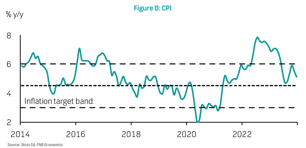 With expenditure pressures stemming from public sector wages and debt servicing costs, the fiscal deficit is expected to remain wide at around 5.0% of GDP. Additionally, significant debt redemptions and ongoing Eskom debt relief efforts will contribute to a high borrowing requirement, posing risks to debt stabilisation. Against the backdrop of weak fiscal climate and subdued growth prospects, there"s a heightened possibility that the government may tap into the accumulated funds, approximately R500 billion, in the South African Reserve Bank"s Gold and Foreign Exchange Contingency Reserve Account (GFECRA). The critical question remains the extent to which these funds will be utilised and for what purposes.