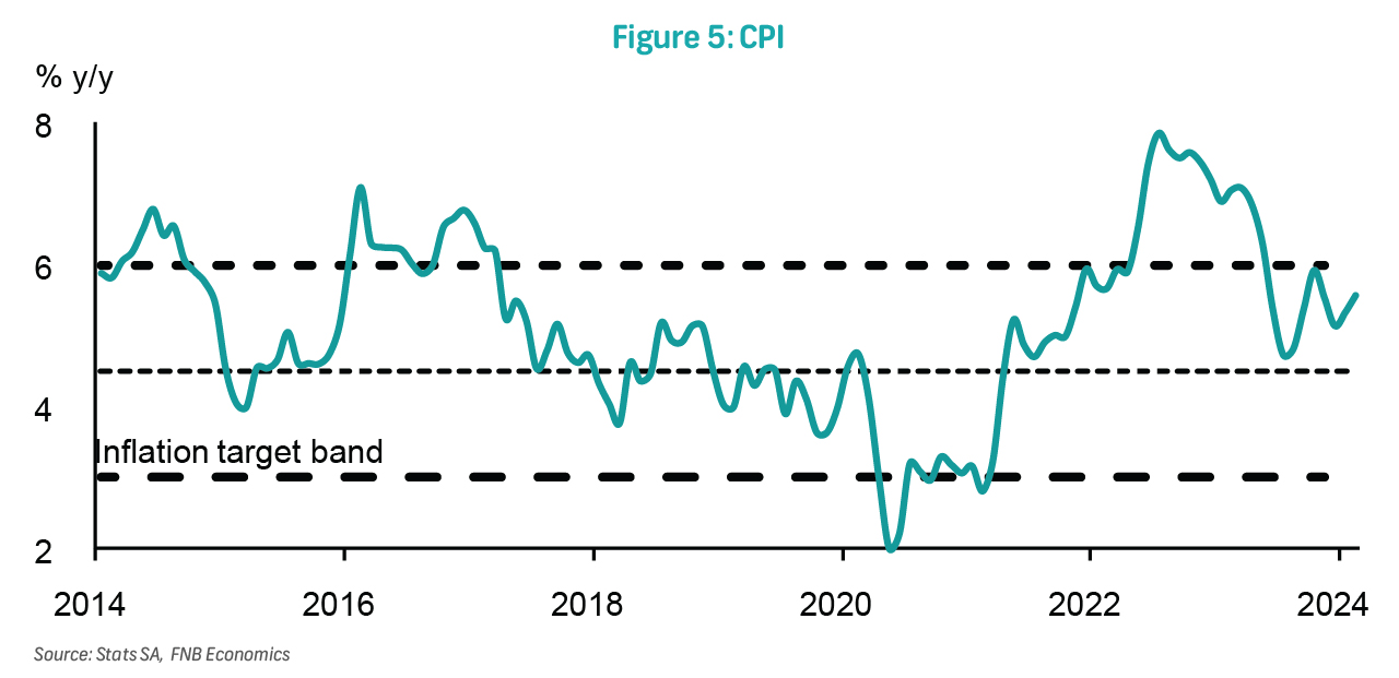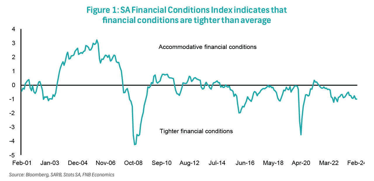 While inflation may have reached its peak, the ongoing disinflation trajectory remains precarious, underscoring material upside risks and necessitating the MPC to exercise extreme caution in avoiding premature interest rate cuts. However, prolonging rate cuts beyond necessity, particularly when broader financial conditions are already restrictive, could further stifle growth and heighten the likelihood of a technical recession. While the US Fed rate remains pivotal for global financial conditions through various channels, the situation in the US differs significantly from South Africa's when viewed from broader financial conditions and consumer perspectives. This underscores the need for the MPC to consider initiating rate cuts. Our long-standing view is that rate cuts are likely to materialise at the beginning of the second half of this year, although the fiscal environment and inflation risks present a risk of further delays.