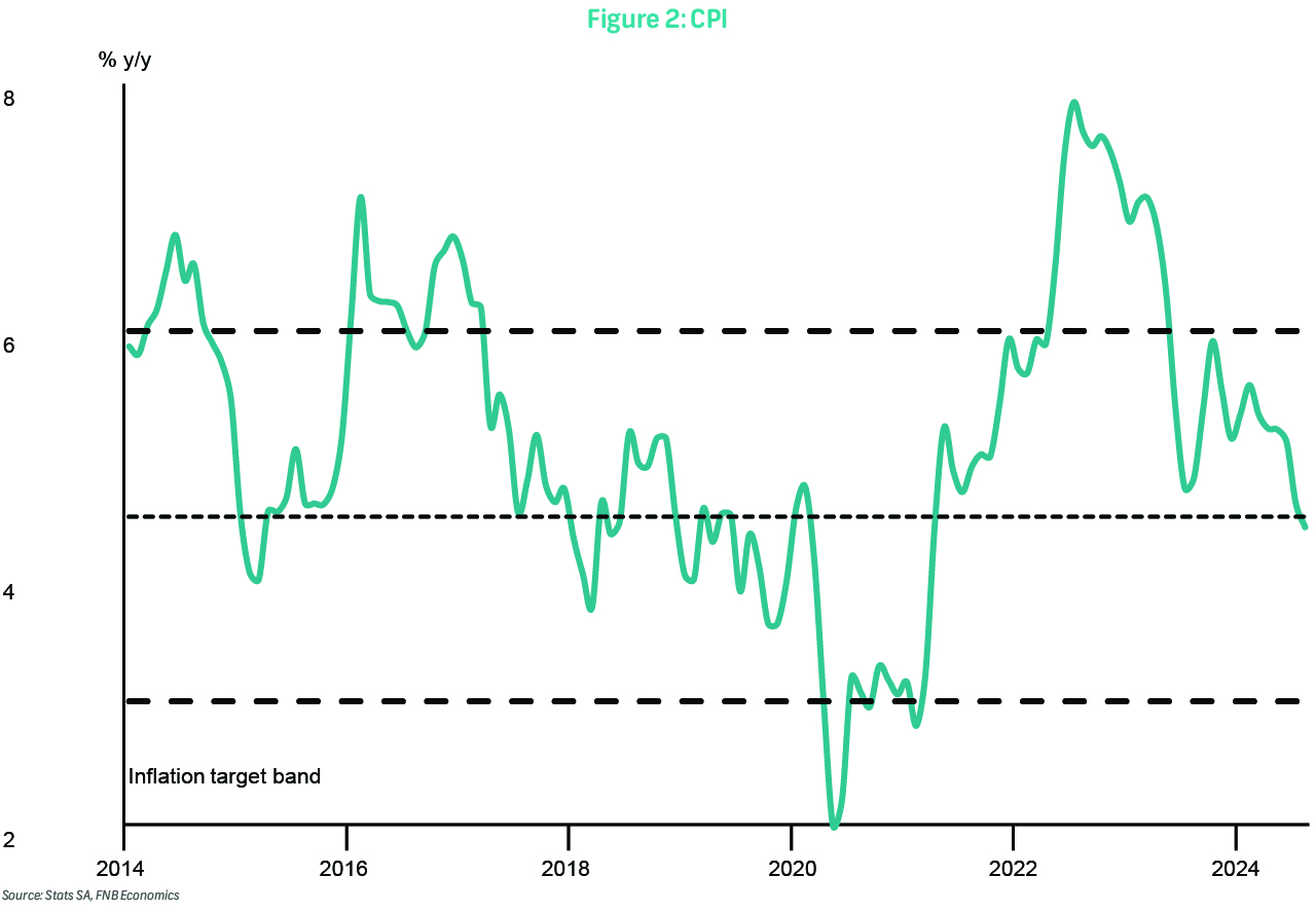 After nearly two years of interest rates at their highest since 2009, consumers and businesses finally received some relief this week. The Monetary Policy Committee delivered a 25bp interest rate cut, following a fall in inflation to below 4.5% and a 50bp reduction by the Fed. While this was our expectation, many are bound to wonder if a larger cut was not warranted. The South African Reserve Bank's (SARB) latest forecasts appear to validate this view, but do they?
