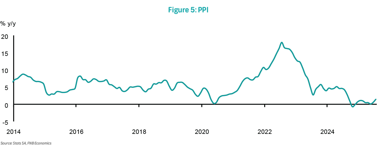 In the absence of supply shocks, weak economic activity begets benign inflationary pressure. Economic growth in SA remains structurally weak and poor labour market conditions have contained demand. Furthermore, weak demand-driven inflation is consistent with fiscal consolidation and restrictive monetary policy. SA has also been fortunate that market fundamentals have kept oil prices soft. At the same time, concerns around macroeconomic balances in the US have weighed on the dollar to the benefit of riskier market currencies such as the rand. These trends have been conducive to lower imported and domestically generated inflation. Compared to the start of 2025, inflation forecasts have been revised downward considerably - from 4.0% in February, post- statistical basket and index base revisions, to a current expectation of 3.4%.