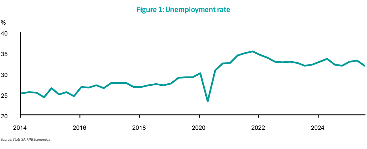 The Quarterly Labour Force Survey (QLFS), a household-based employment survey (not seasonally adjusted), reflected an increase in total employment of 248 000 q/q in 3Q25, following an increase of 19 236 in the previous quarter. Compared to the same quarter last year, employment improved by 109 000 to 17 055 000. The level of unemployment declined by 360 000 q/q (3 000 y/y), bringing the total number of unemployed individuals to 8 007 000. As a result, the official unemployment rate fell by 1.3ppts to 31.9%. The combined rate of unemployment and the potential labour force declined to 42.4% in the 2Q25, from 43.0% in the previous quarter. Despite this modest improvement, the persistently high unemployment rate highlights the ongoing vulnerability and weakness of the labour market. This challenge is further exacerbated by increased uncertainty about the potential employment effects of US tariffs on key sectors such as agriculture, automotive, machinery and equipment manufacturing, and mining (excluding critical mineral producers). Over the medium term, sustained structural reforms and accelerated efforts to diversify export markets will be crucial to support job creation and strengthen labour market resilience.