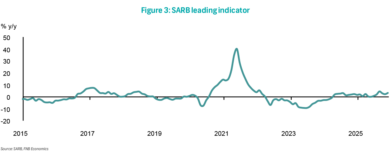 The MPC views SA's economic growth as more stable. After four consecutive quarters of expansion, the economy is expected to continue growing in 4Q25. However, unlike most of 2025, growth in investments should compound gains from household spending over the medium term. That said, the SARB has not changed its growth forecast but noted upside risk instead. We see slightly higher growth this year but slower than the SARB over the period to 2028 (Figure 1). Should the SARB's upside risk materialise while coupled with productivity enhancements, this would still allow policy to shift into neutral territory.