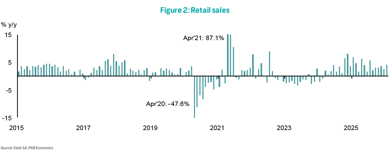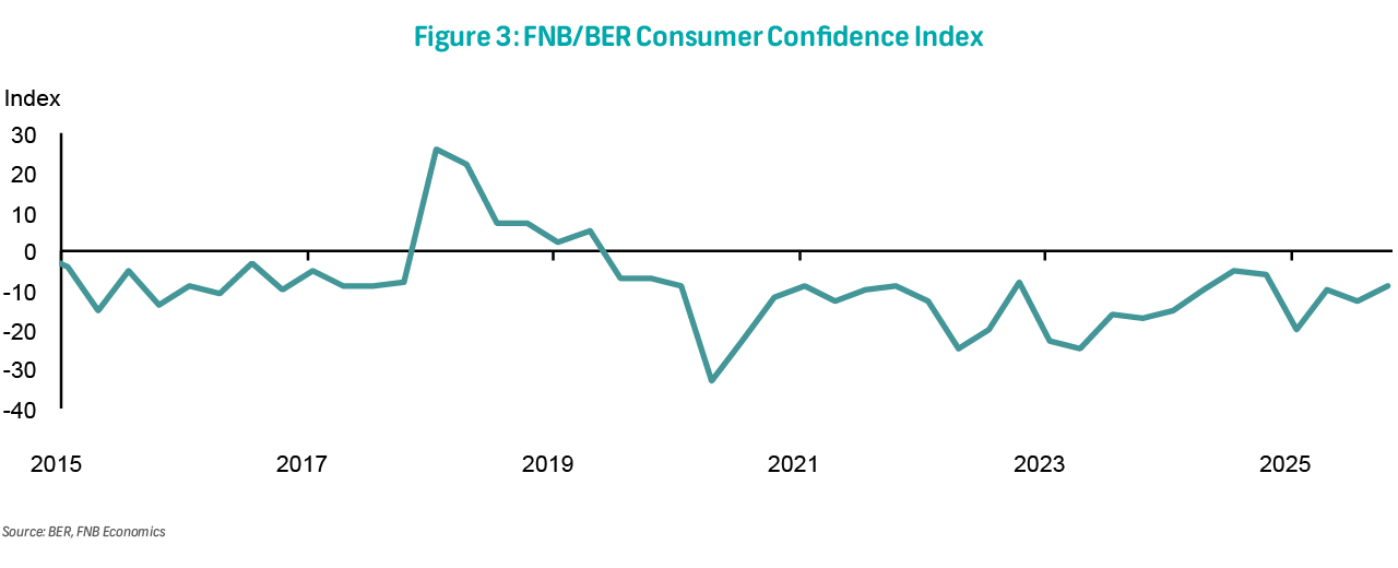 On Tuesday the FNB/BER Consumer Confidence Index (CCI) will be available for 1Q26. In 4Q25 the index rose to -9, up from -13 previously. The increase reflected an improved outlook on the economy and household finances as well as more willingness to purchase durable goods