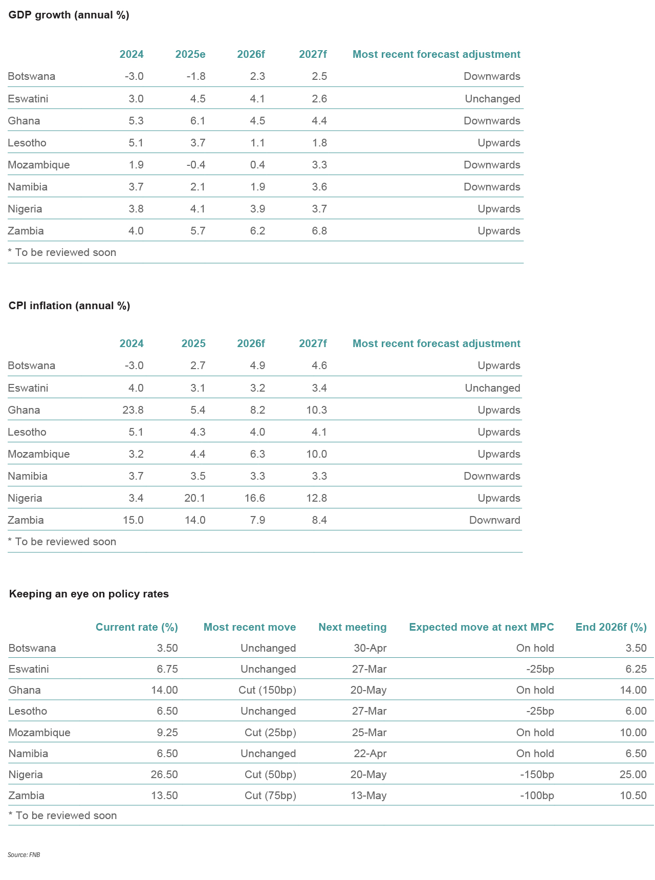The South African Reserve Bank's (SARB) Monetary Policy Committee (MPC) will announce its second interest rate decision for 2026 on Thursday, 26 March. While there was a split on whether they would cut interest rates or leave them unchanged at the January meeting because expected inflation provided ample space for continued easing, the market was less split on expectations of a cut in March. This was before the war that is currently raging through the Middle East. Since then, the degree of uncertainty around the inflation trajectory has risen, and a conservative MPC may not want to make further moves downward during these volatile times. We remain constructive on the South African (SA) economy's outlook, but we are confronting an inflation shock that is likely to reverberate across the entire economy and sustain shifts in expectations.