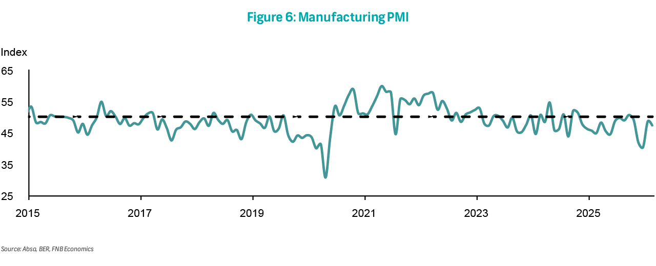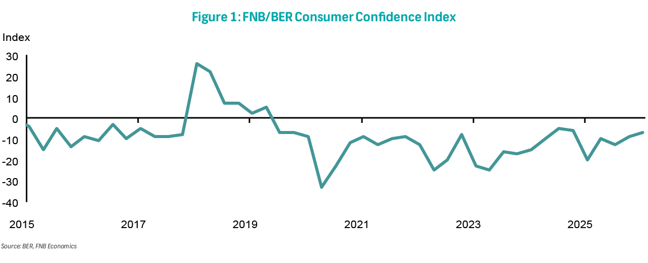 The FNB/BER Consumer Confidence Index (CCI) improved to -7 in 1Q26, from -9 previously, driven mainly by a strong rebound in sentiment among high-income households. Better household financial expectations and a more positive economic outlook supported overall confidence, helped by factors such as lower interest rates, stronger asset prices, a firmer rand and, partially supportive fiscal measures announced in the 2026 Budget in February. This improvement suggests that consumer spending momentum remained intact at the start of the year, particularly among more affluent consumers who account for a large share of discretionary spending. Nevertheless, the outlook has since become more uncertain due to heightened geopolitical risks following the escalation of conflict in the Middle East.