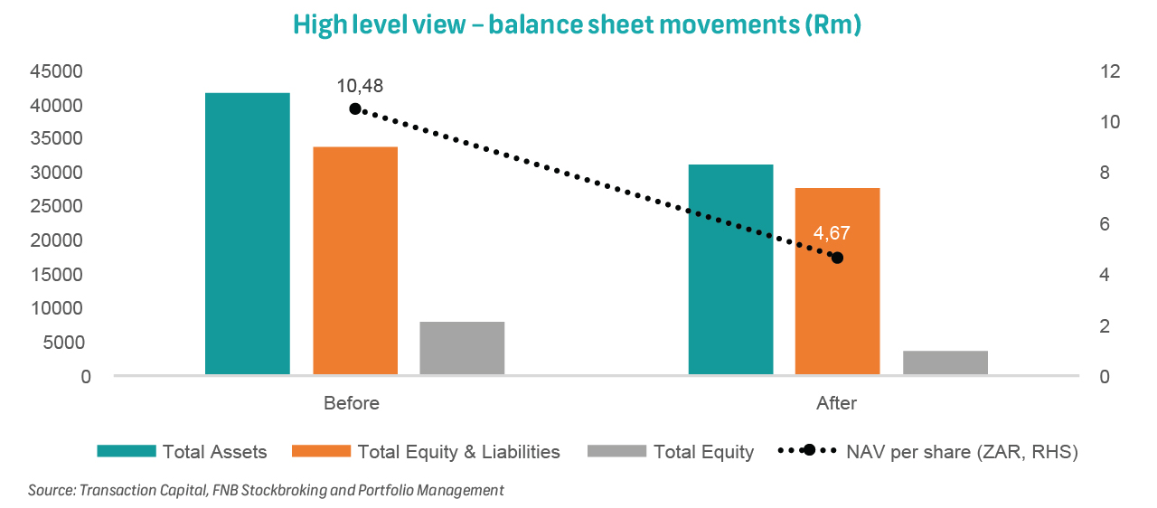 TCP will use the proceeds from selling WBC shares to settle or significantly reduce its debt (R1.1 billion revolving credit) and remove the cross-default triggers currently in place - the liability Transaction Capital has to lenders if its ailing SA Taxi division defaults on its debt. SA Taxi carries a significant debt burden of more than R17 billion, of which ~R5.3 billion is at risk of default. The unbundling will further result in the cancellation of a contingent put option liability contracting TCP to buy the 25.1% stake in WBC held by its founders, Faan and Dirk van der Walt, at their discretion.