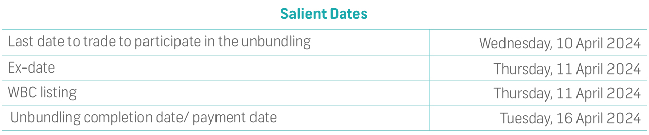 Value accruing to TCP shareholders (including the unbundling of WBC)