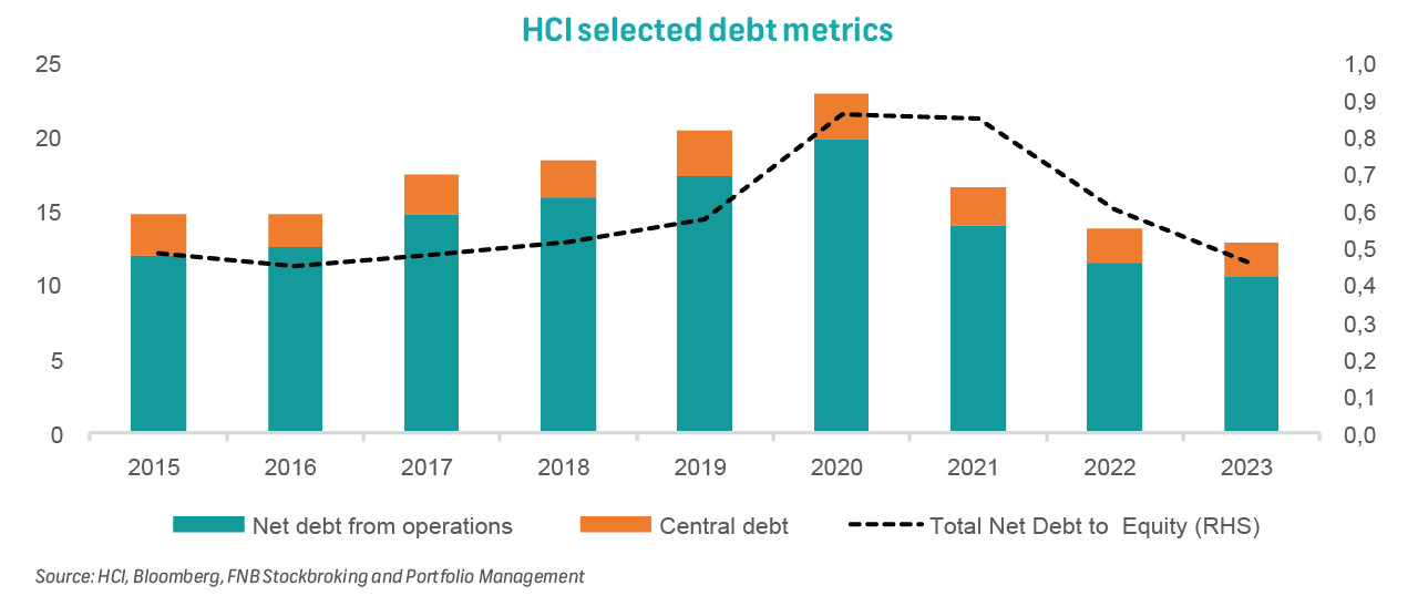 Investment in the oil and gas sector, particularly through Impact Oil and Gas, contributes to its diversified portfolio and exposure to the energy industry. The group's energy exploration and PGM assets are speculative and volatile in nature, however, a favourable opportunity to monetise these assets could support reducing a chunk of HCI's debt.