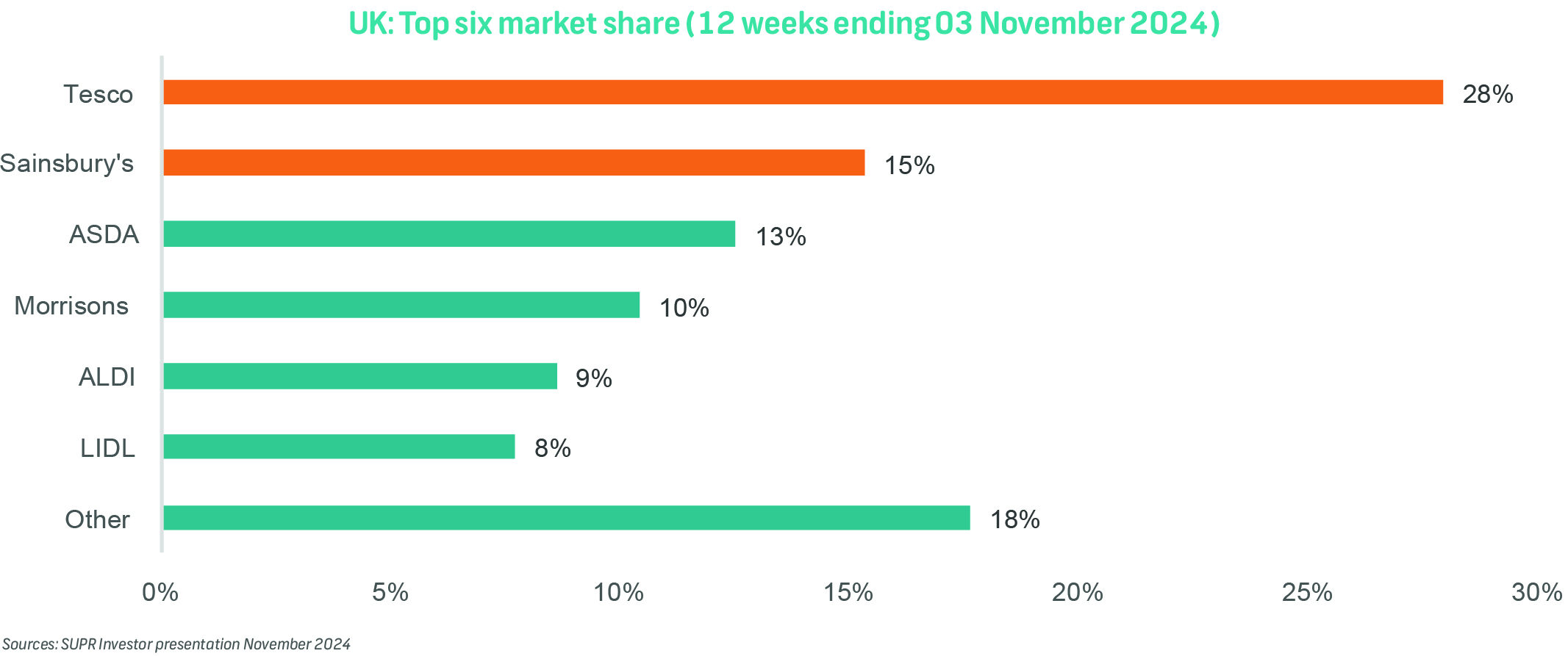 Tesco and Sainsbury's, the company's key tenants, hold 27.7% and 15.2% market share, respectively. Both operators have increased market share in the last 12 months and are seeing the benefit of investments in their stores, product ranges, and loyalty schemes.