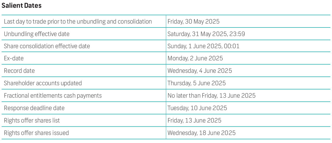 Fractional entitlements will be rounded down to the nearest whole number, with cash payments in respect of these entitlements to be announced by 11:00 on Tuesday, 3 June 2025.
