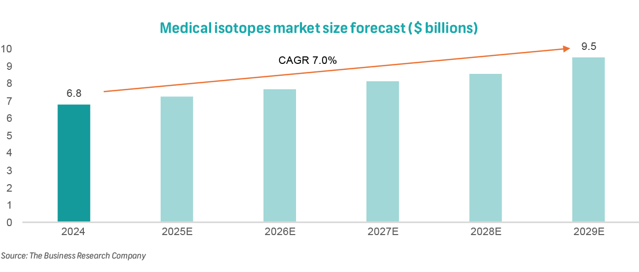 Isotopes have one of the most severely compromised supply chains in the world. Isotope supply is mostly controlled by the Russian state-owned entity, Rosatom State Nuclear Energy Corporation, and two small European producers. Other smaller listed competitors include: