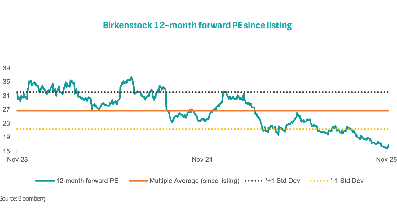 On current multiples, Birkenstock trades at a significant discount to its average rating since listing and a discount to peers despite its superior growth profile, brand strength, and robust margin structure.