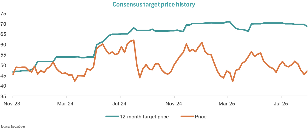 Consensus is exceptionally positive on the stock with 90% of sell-side analysts maintaining a "Buy" on the stock and 10% having a "Hold" recommendation. The consensus 12-month target price is $69.24, representing a 43.0% upside from current levels.