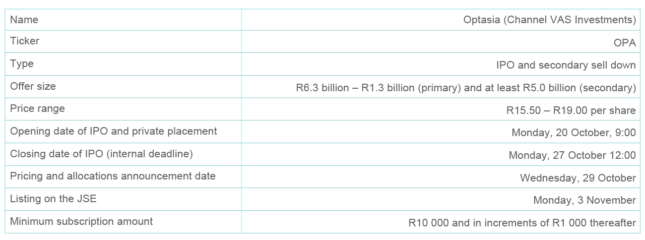 FNB is participating in the Optasia IPO and private placement. Please note that the minimum application amount is R10 000 in