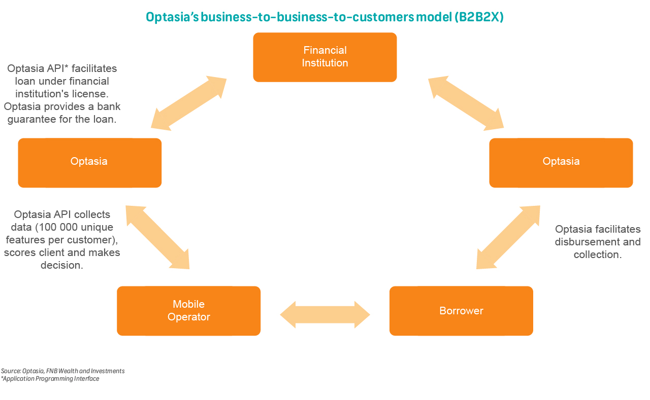 advances or small cash advances they can borrow instantly through their phones. Optasia underwrites the customers' default risk