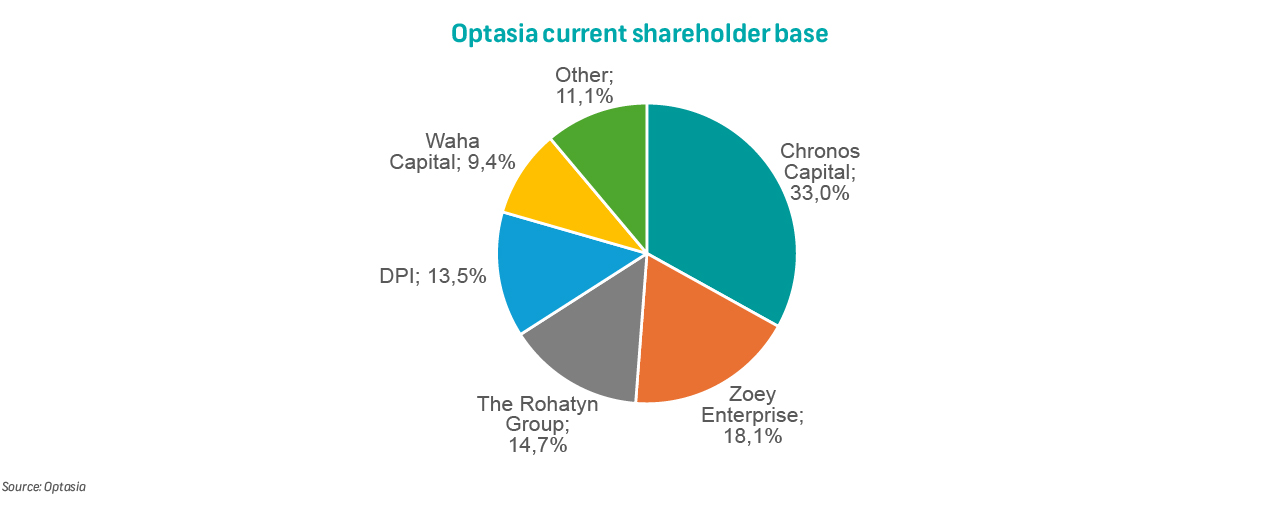 Optasia's current shareholder base includes venture capital and private equity firms Chronos Capital (33.6%), Zoey Enterprises