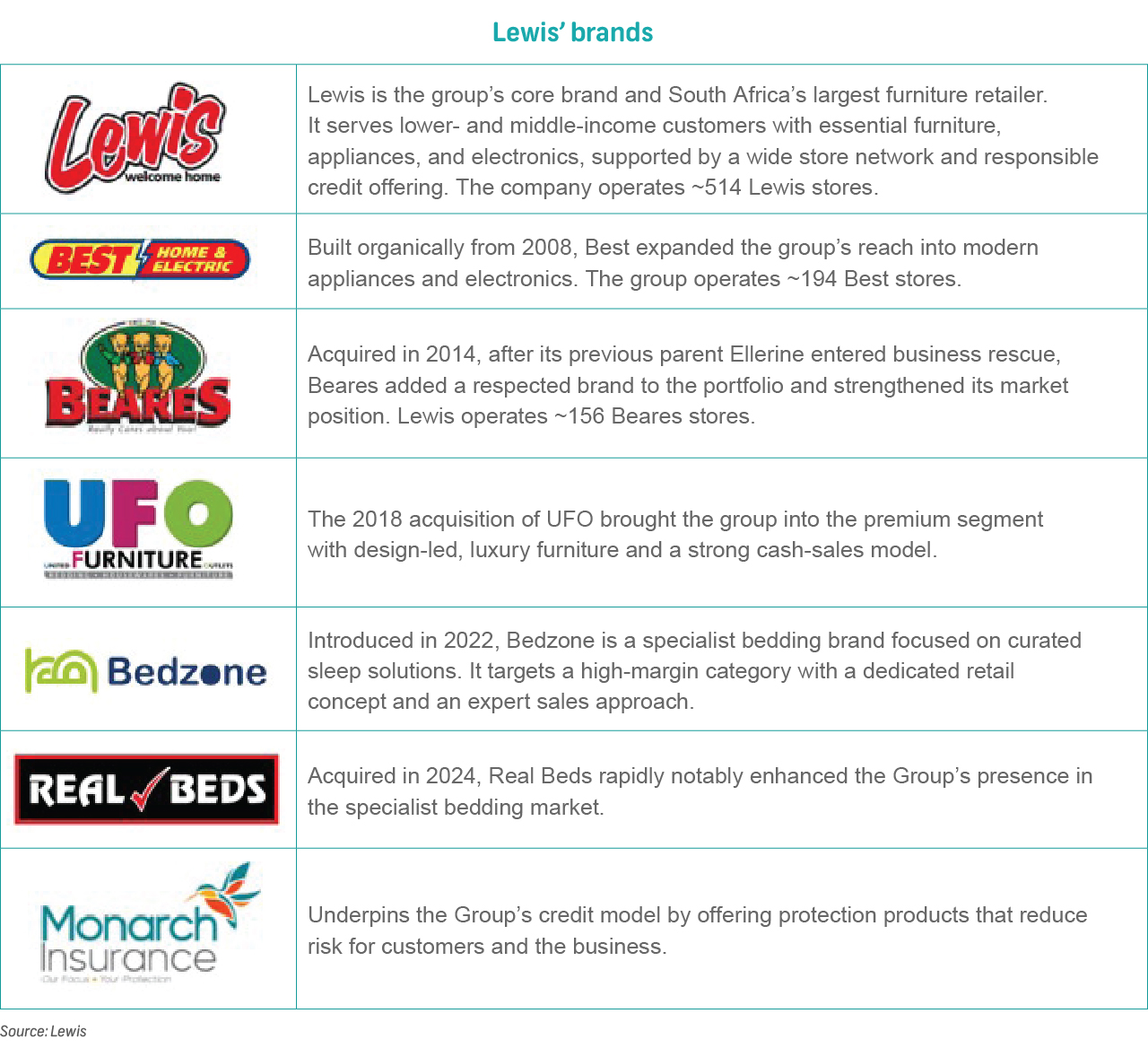 Lewis Group is not a single-brand entity. Its portfolio strategically targets different market segments, from the core credit-based Lewis and Beares brands to the upmarket cash-based UFO and the specialist Bedzone and Real Beds chains. This diversification provides resilience against economic shifts and allows the Group to capture a wider share of the total home goods market.