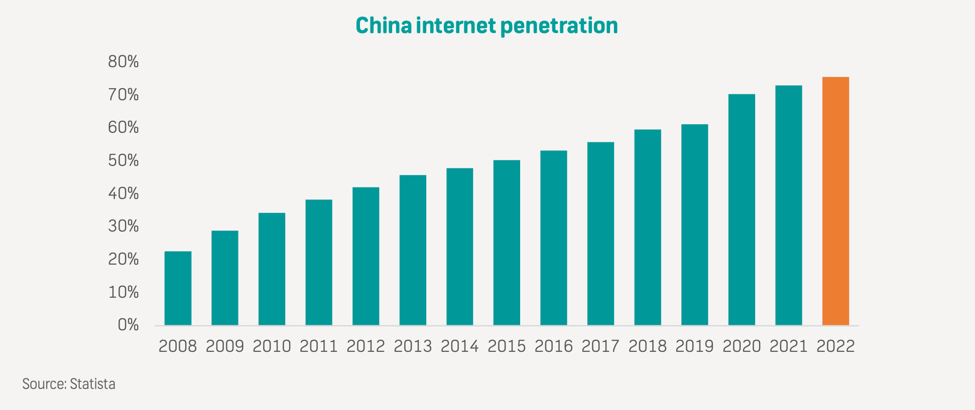 Alibab's digital businesses have a large addressable market - China remains the most populous country in the world and boasts an internet penetration rate of 75% and growing.