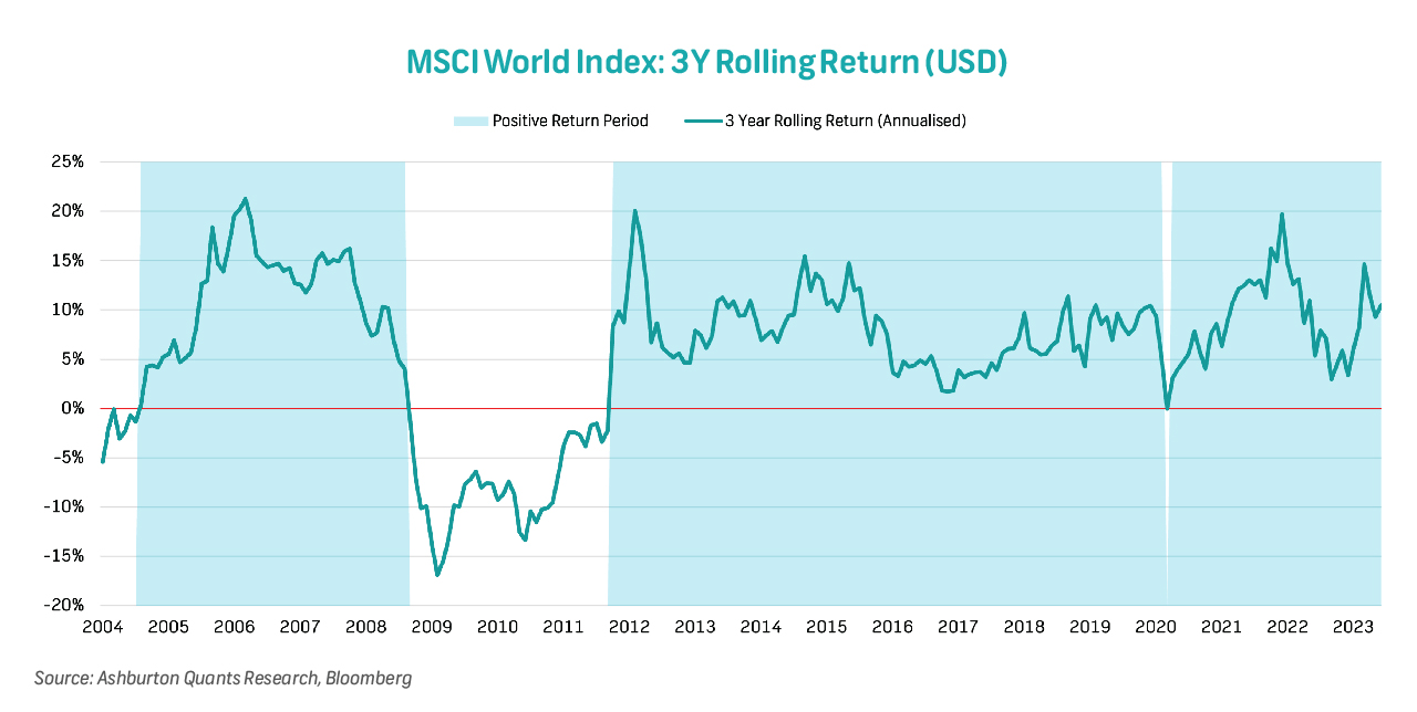 The graph below shows that the MSCI World Index has delivered a positive performance over a three year rolling period since 2012. This strong track record, coupled with the enhanced returns through the 110% participation factor provides investors with an attractive investment opportunity.