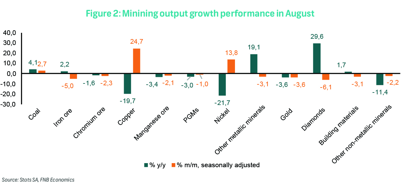 Seven of the twelve mining divisions recorded lower production in August, with mixed results across key divisions (see Figure 2 for all twelve divisions):