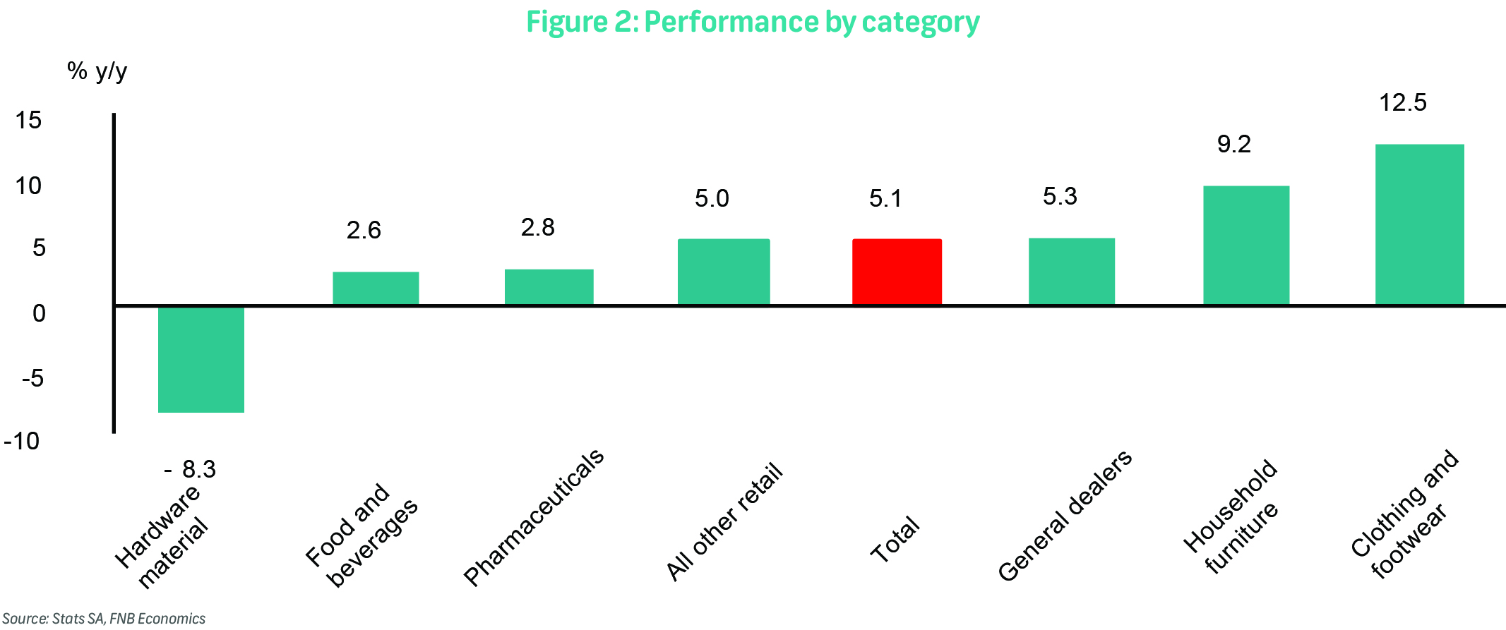Year-to-date retail sales are up 4.3% y/y, indicating a relatively strong start to 2025. This reflects improved household finances, supported by lower inflation and reduced borrowing costs. However, the sharp slowdown in March signals rising consumer caution, likely due to the fading impact of once-off two-pot pension withdrawals and heightened uncertainty both domestically and globally.