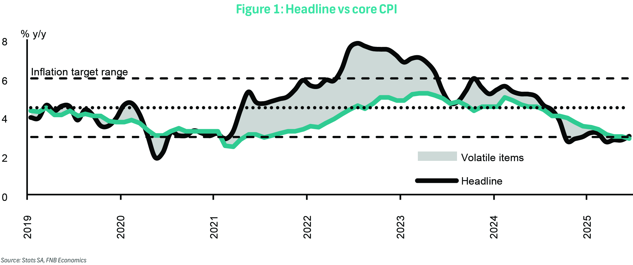 Positive base effects will also fade, assisting the lift in inflation over the coming months. That said, headline inflation should remain contained around the midpoint of the target range. Soft inflation will be supported by weak oil prices, a stronger rand, and a slow recovery in economic activity. We forecast headline inflation to average 3.5% this year.