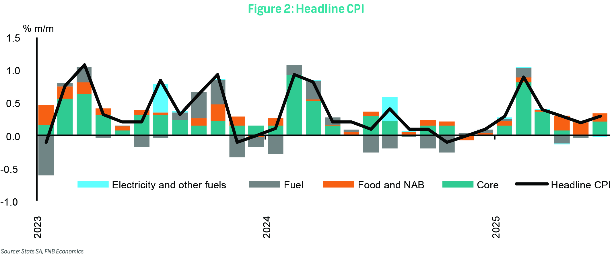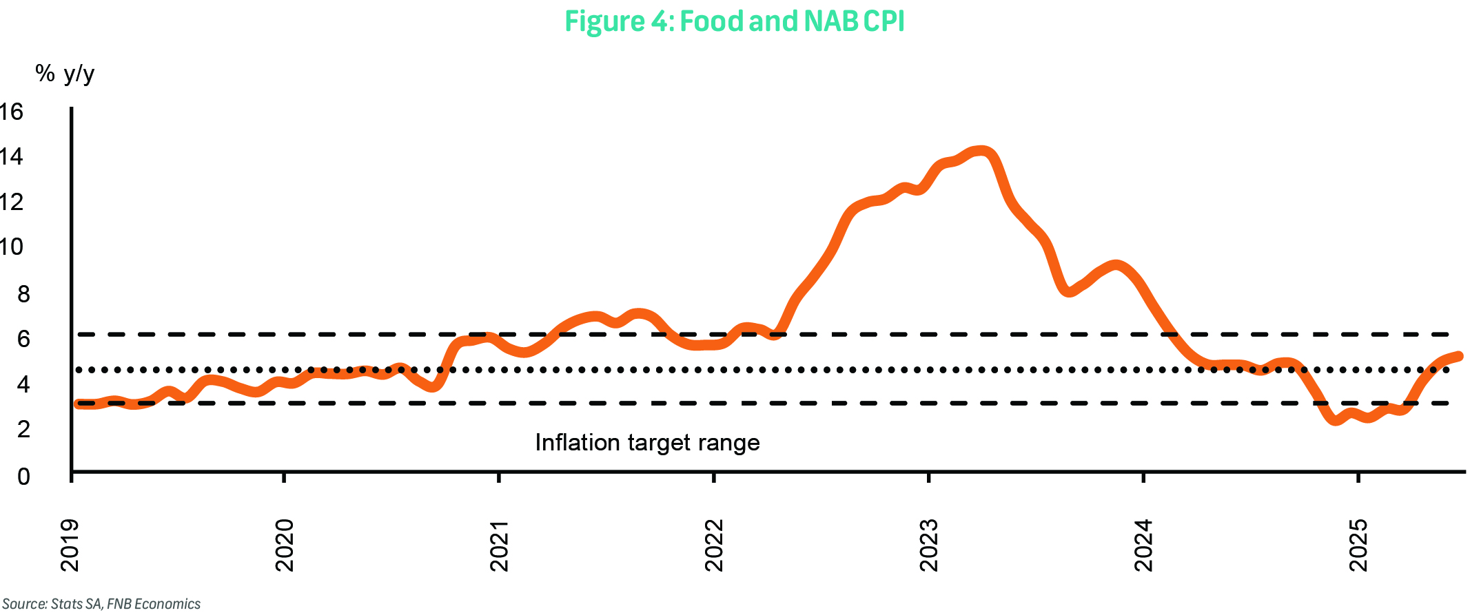 Food and non-alcoholic beverages (NAB) inflation was 5.1% y/y, up from 4.8% previously. Monthly inflation was 0.7%, led by meat inflation.