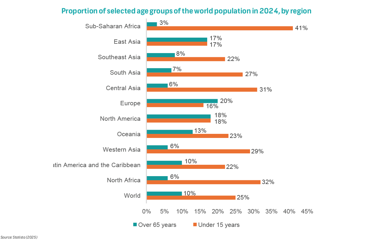 At the same time, compounding factors such as urbanisation, higher education and access to family planning have led to smaller family sizes and fewer births, resulting in fewer children in many countries. Consequently, individuals aged 60 and above are growing in number and outnumbering younger people, leading to population ageing.