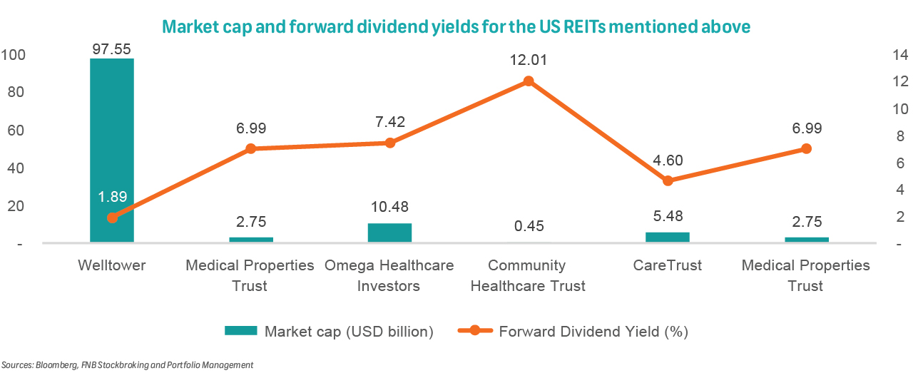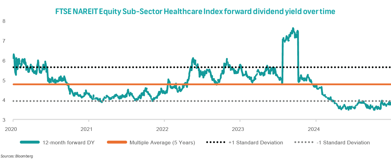 This provides an interesting opportunity for investors who seek to gain exposure to unique or dedicated sub-sectors within the property space and allows for the potential to generate significant gains or diversification benefits. In addition, Healthcare REITs also provide market participants with an interesting addition to their portfolio, particularly for income-focused investors given that these counters boast steady and predictable cash flows. The sector, unfortunately, looks quite expensive currently - offering forward dividend yields at the bottom of its five-year range. This means that investors may have to be more specific when deciding on where and what to invest in.