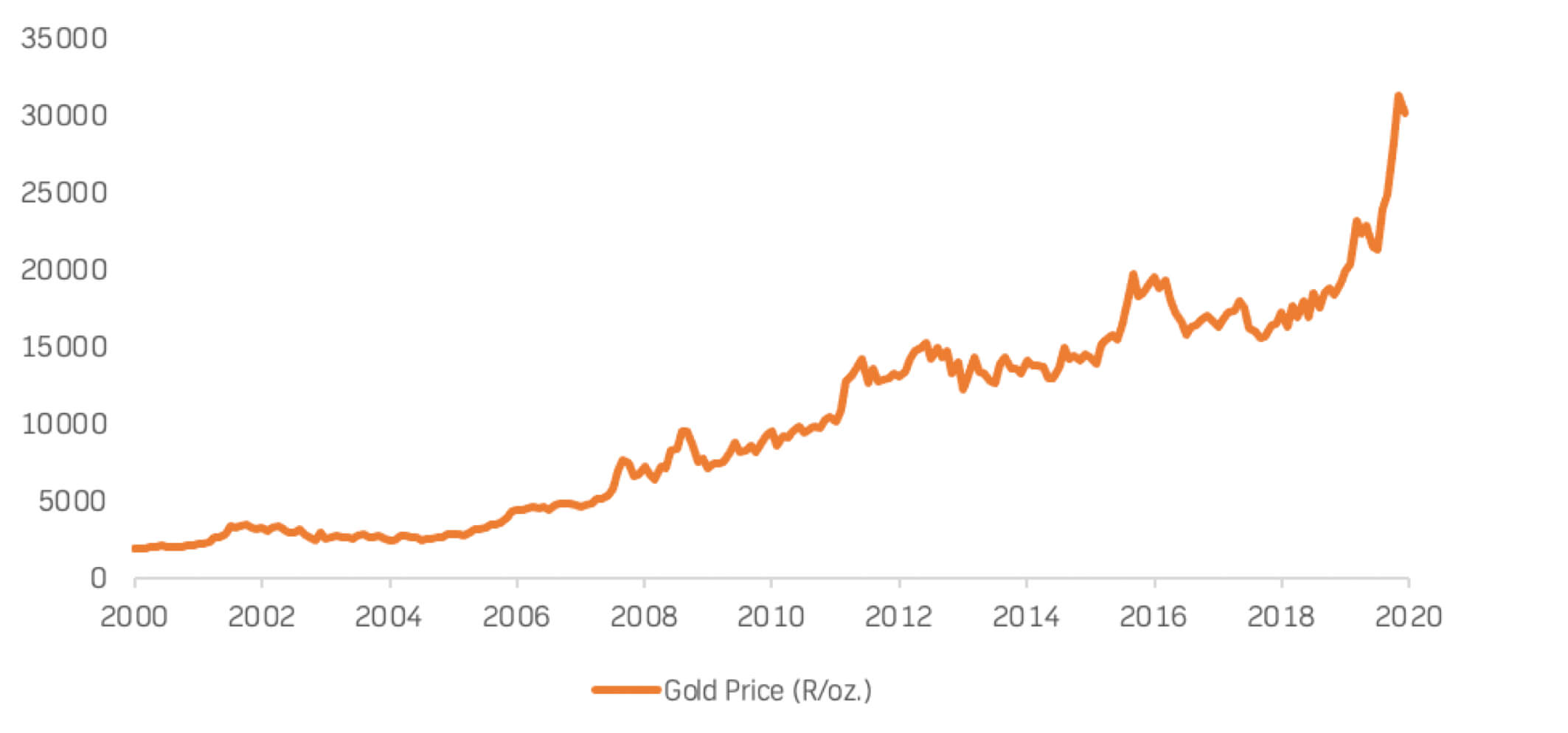 20-year gold price in ZAR/oz