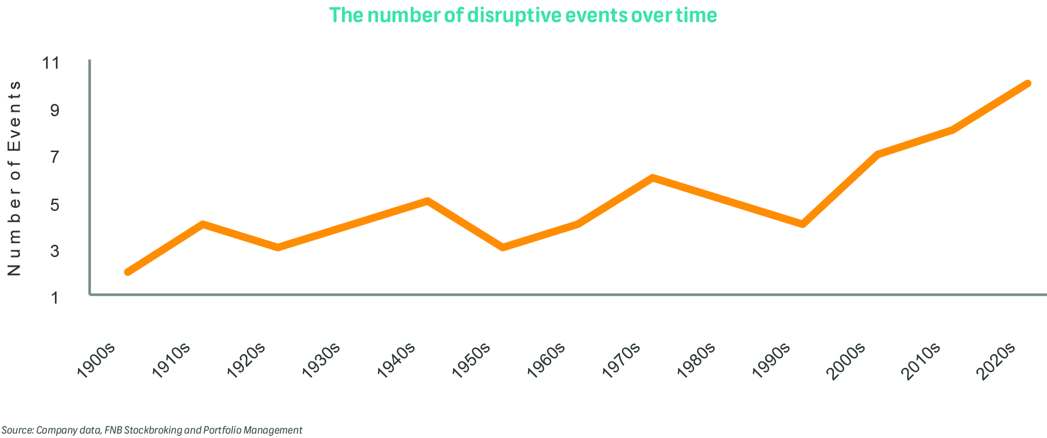 Russia-Ukraine war (2022-present): Thus far, the invasion and immediate market reaction (and political action) has resulted in the reshaping of entire sectors and policy frameworks. European nations accelerated their shift towards renewable energy, energy independence, and defence spending. Fossil fuel producers benefitted from elevated oil and gas prices, while alternative energy shares gained traction as governments prioritised green transition strategies. Supply-chain disruptions forced companies to reassess their global sourcing strategies, increasing investment in domestic manufacturing and technology innovation.