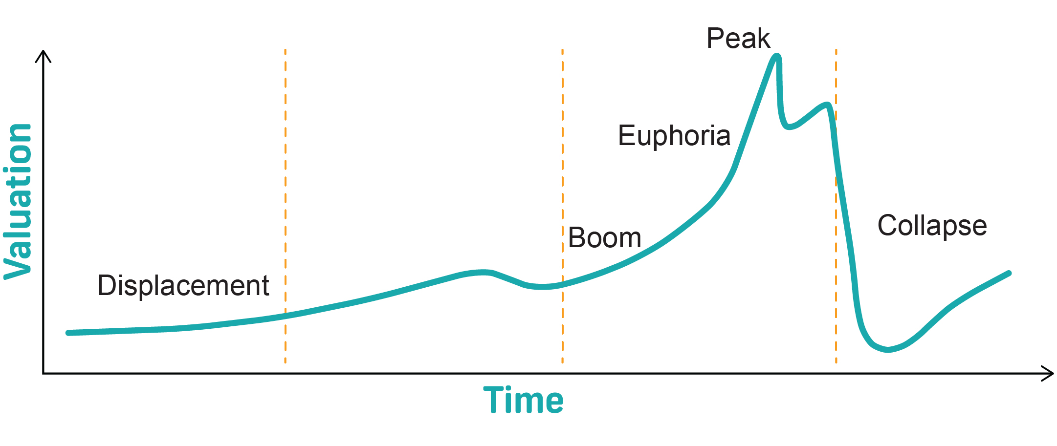 underlying fundamentals. Bubbles typically form through a cycle characterised by rapid expansion, peak valuation and eventually, a