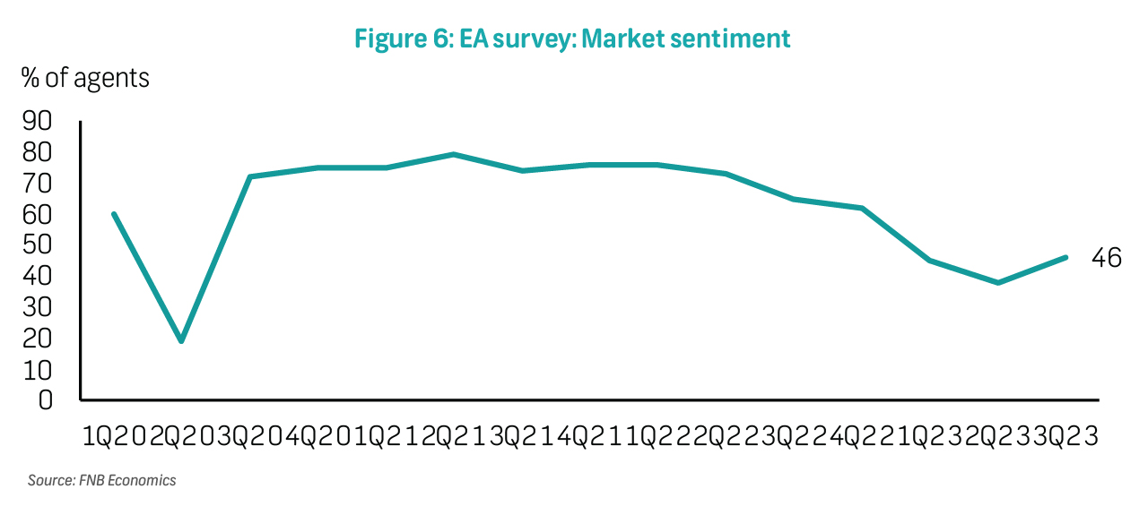 Correspondingly, agent expectations for the housing market showed some optimism in 3Q23, with 50% of respondents expecting an increase in activity in the next three months, compared to 17% in 2Q23. Factors cited for this optimism include expectations that interest rates have peaked as well as the customary increase in activity during the summer months. Less severe load-shedding in recent months has also boosted sentiment in the market.