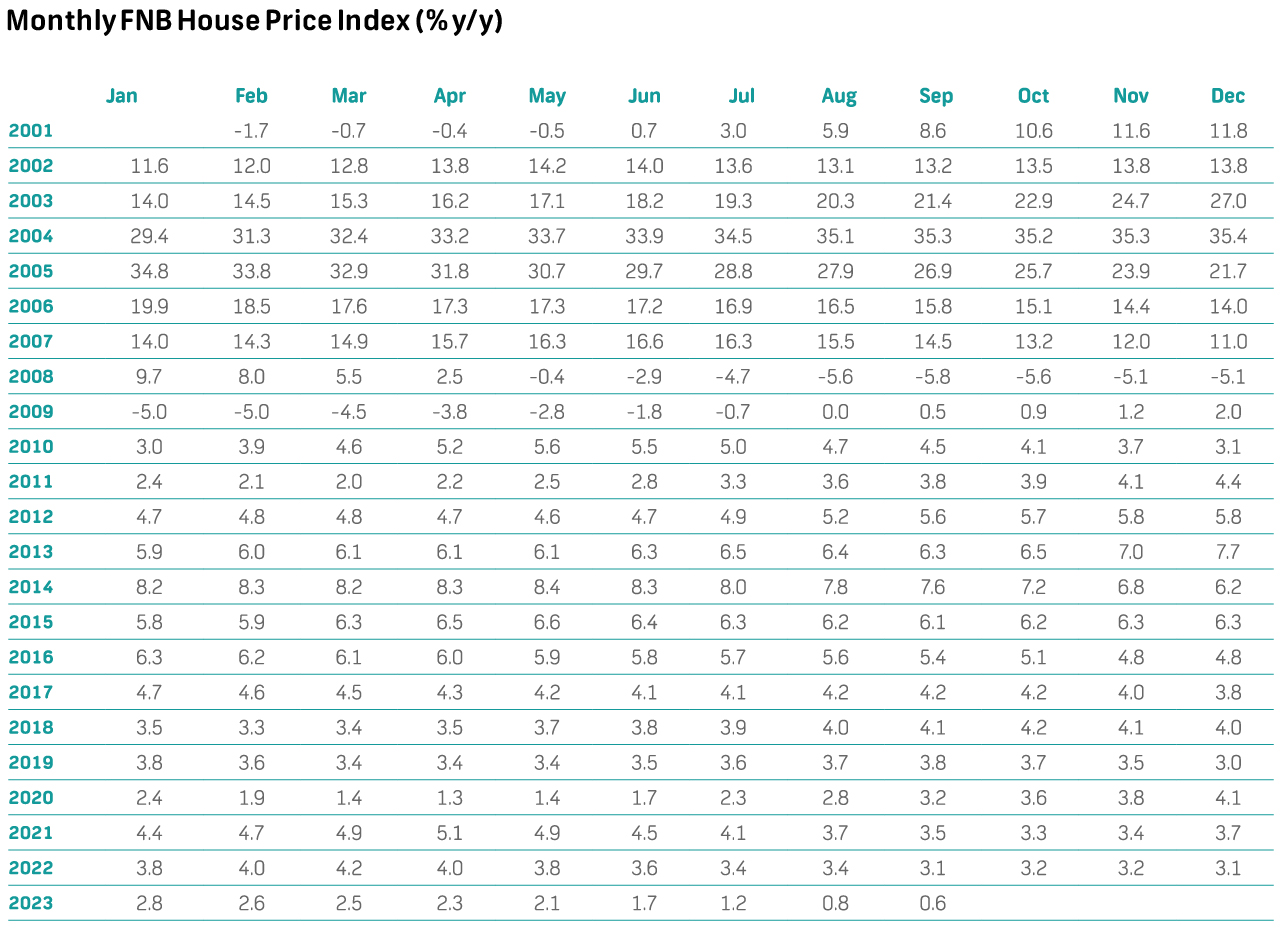 The index is compiled from FNB's own valuations database, thus based on the residential properties financed by FNB.