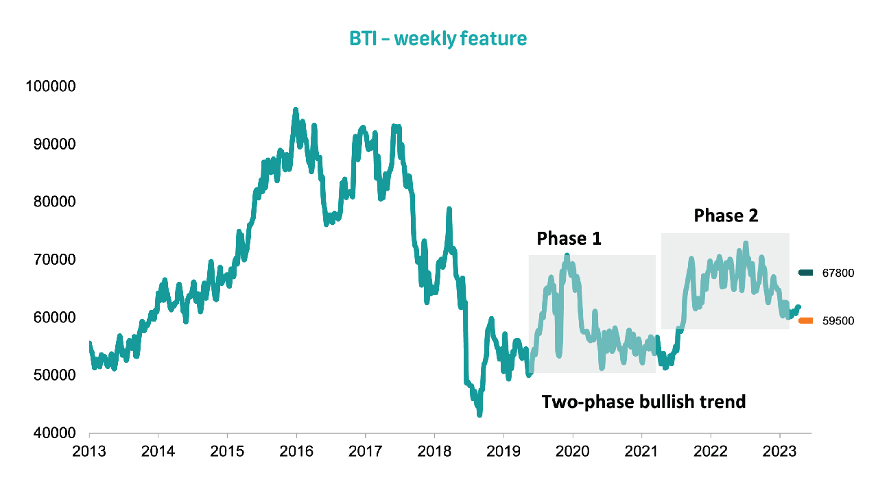 Our profit target is R22.50, with a trailing stop-loss at R19.40. Exit the trade around 30 October 2023. |