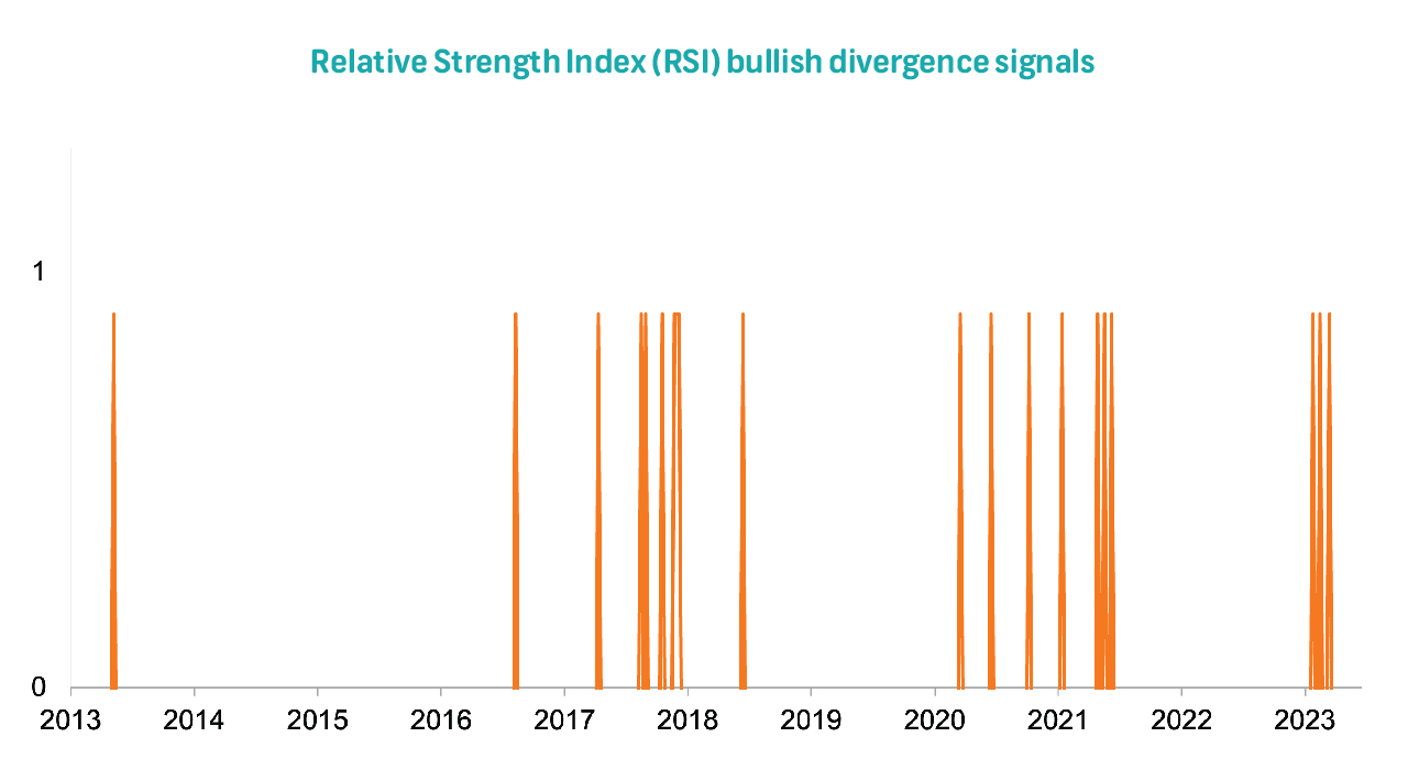 The share continues to display signs of a bullish divergence. The share remains below its 200-day simple moving average, and we maintain a counter-trend strategy. The price action also seems to be building a base.