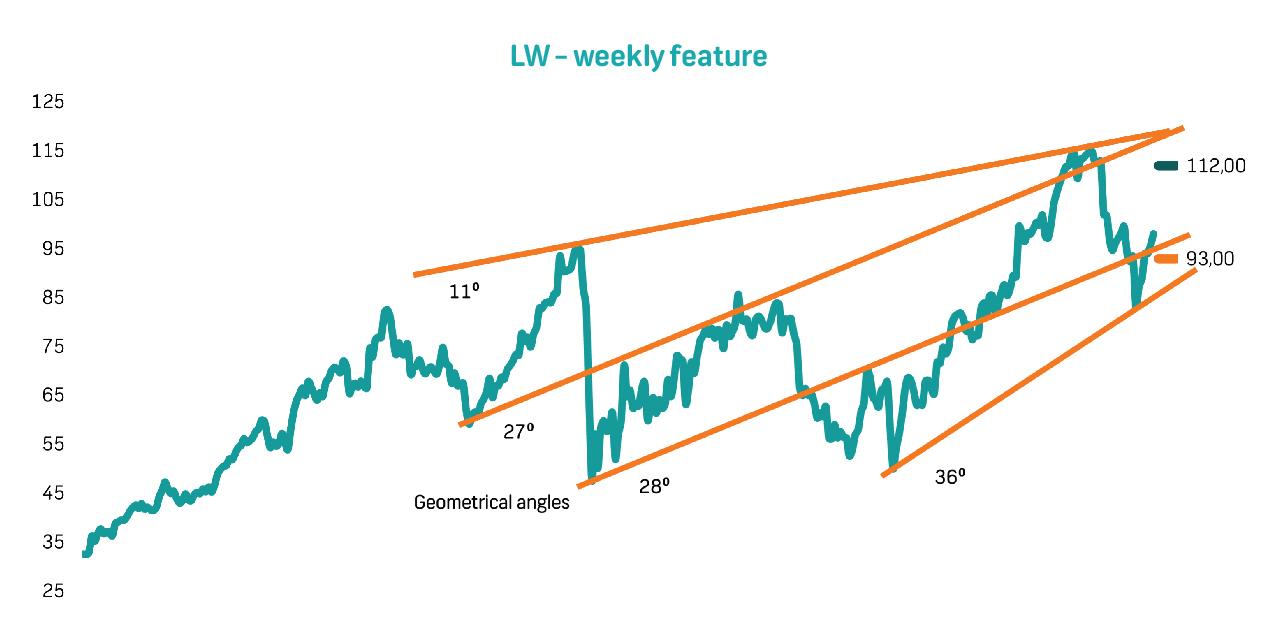 Technically, a price that appears to be forming classical geometrical angles makes for an appealing investment opportunity (see the trendlines with angles on the main chart). Geometrical angles are often associated with Gann angles or Gann lines and are used to identify potential support and resistance levels in a price chart.