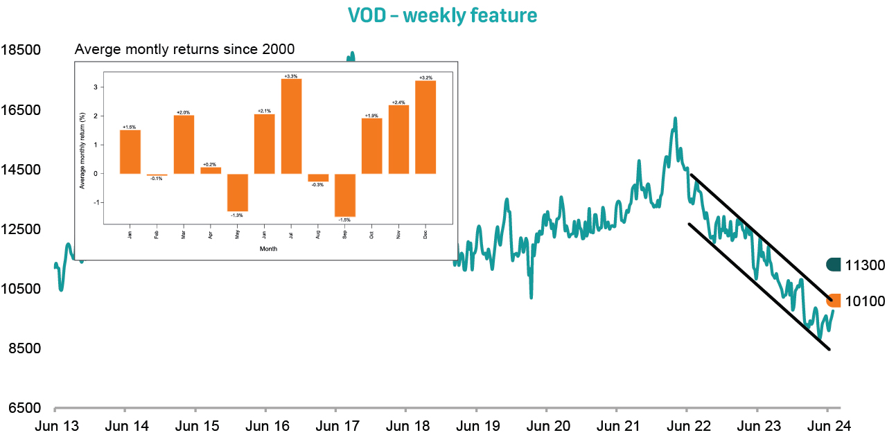 Our profit target is at R11 with a trailing stop-loss at R11.55. Exit the trade on 16 September 2024 |