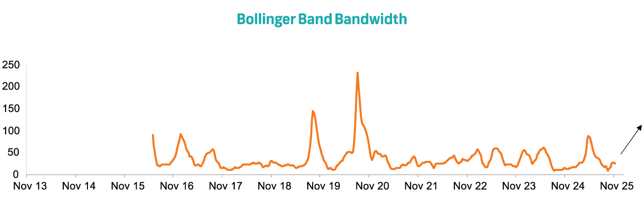 | Comment | Price action near the lower two standard deviation range of the linear regression channel remains constructive. Holding above the 200-day SMA with easing downside momentum. We maintain the R149.00 target, with a trailing stop at R125.00. | A sequence of bullish swings remains encouraging despite a brief dip below the 200-day SMA. Weakening downside momentum supports the setup. We maintain a profit target of R87.00, with a stop-loss at R69.00. | An emerging Elliott Wave one structure remains notable, though the dip below the 200-day SMA and persistent downside momentum poses risks. We maintain a profit target of R413.00, with a stop-loss at R347.00. |