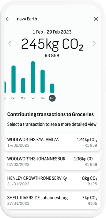 nav» Earth gives you access to a carbon calculator that provides emission insights and a Carbon Coach to guide you on sustainable living.